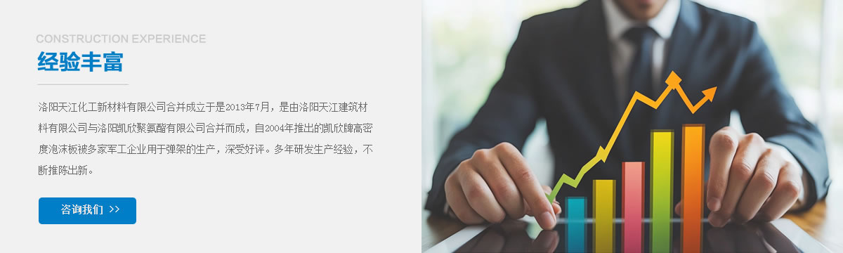 洛陽天江化工新材料有限公司成立于是2013年7月,是由洛陽天江建筑材料有限公司與洛陽凱欣聚氨酯有限公司合并而成,位于洛陽市孟津縣白鶴鎮華陽產業集聚區。本公司業生產系列聚氨酯組合料及系列聚氨酯制品。公司目前擁有年產2萬噸組合聚醚生產裝置和年產10000m3泡沫制品生產能力。公司先后推出了城市集中供熱管道保溫組合聚醚、車庫門填充組合聚醚、冷庫及建筑節能噴涂組合聚酯、水發泡車用噴涂組合聚醚