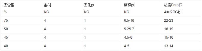使用說明:(重量)5份主劑配:1份固化劑:醋酸乙酯6-8-10(根據涂膜厚度)